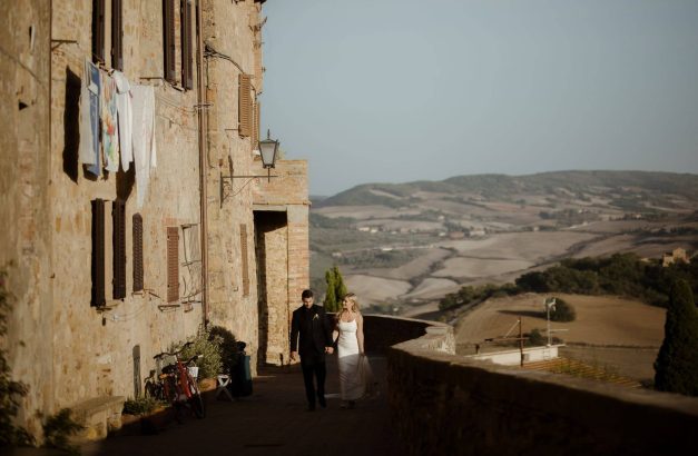Lo splendido panorama della Val D’Orcia è davvero uno scenario da sogno per matrimoni indimenticabili. L’unicità di questa parte della Toscana, nota per le dolci colline che mutano colore con il variare delle stagioni, è uno dei motivi per cui molte coppie scelgono questa destinazione per le loro nozze. Questa parte della Toscana punteggiata da borghi pittoreschi – dove la vita scorre a ritmo lento e i balconi si affacciano su panorami mozzafiato – è ricca di antichi casolari e ville trasformati in location per matrimoni ricche di fascino, perfette per matrimoni intimi o di media grandezza in un contesto di rara bellezza.